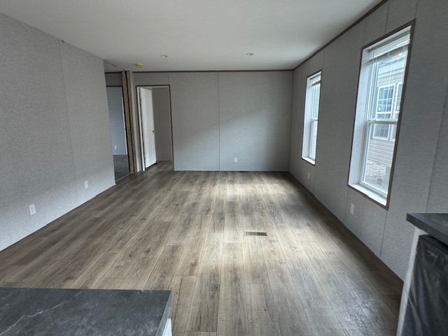 Interior Flooring: Woodgrain Linoleum Throughout with Matching Transition Strip