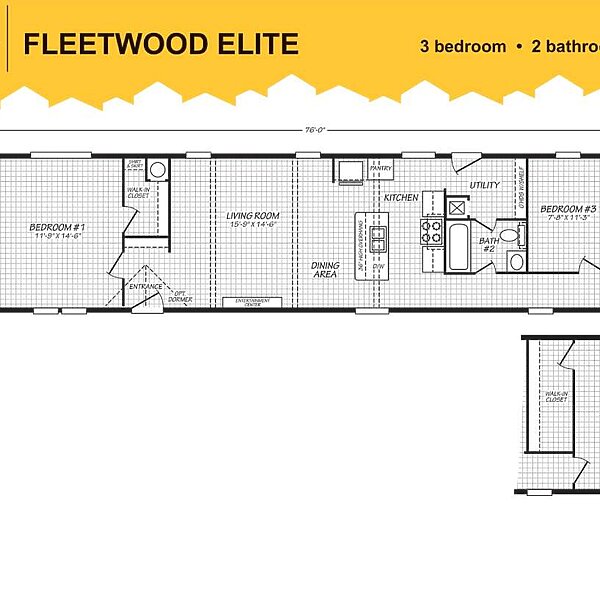 BEDS: 3     BATHS: 2     SQ FT: 1178     W X L: 16′ 0″ x 76′ 0″