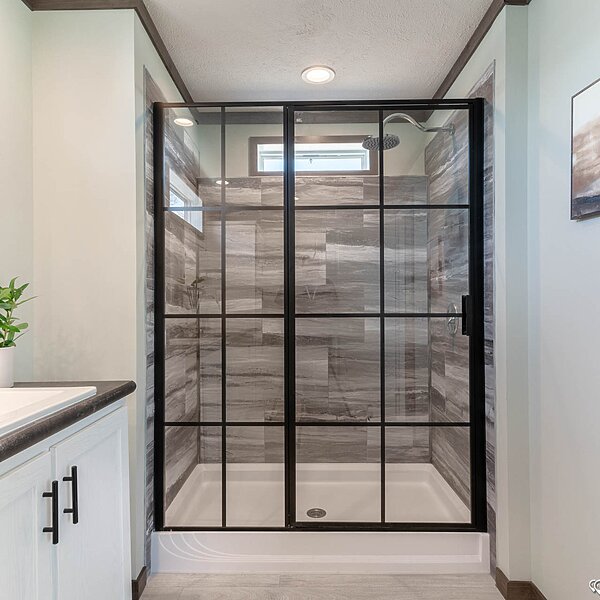 Bathroom Shower: 48x72" Tile Walk in Shower w/Glass / 60" Fiberglass Tub/Shower In Guest Bath (Most Models)